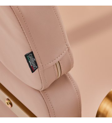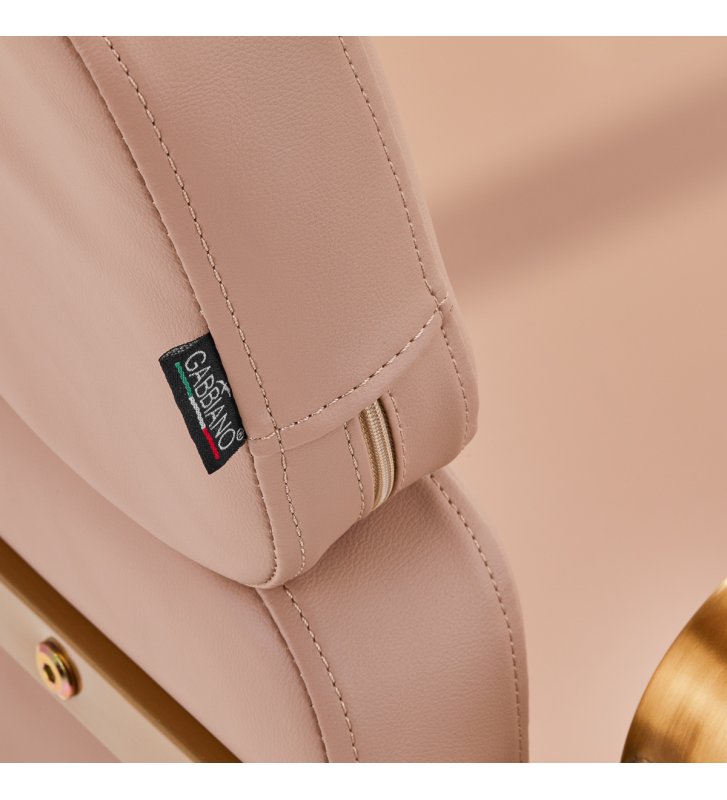 Wypełnienie z trwałej, odpornej na odkształcenia pianki oraz obicie wykonane z przyjemnej w dotyku skóry syntetycznej zapewniają trwałość mebla i jego komfortowe użytkowanie przez długi czas. Sprawiają również, że sprzęt jest odporny na wilgoć, wytrzymały oraz łatwy do czyszczenia. Pokrycie w odcieniach beżu nadaje mu wyjątkowego charakteru. Sprzęt wyróżnia nowoczesny design, który sprawia, że fotel będzie doskonale prezentować się w wielu profesjonalnych salonach.