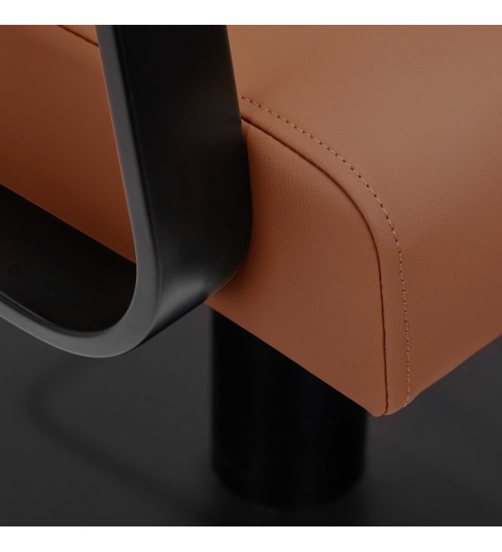 Trwały podnośnik hydrauliczny pozwala dostosować poziom siedziska w granicach 49-61 cm – nawet w momencie, gdy klient siedzi na fotelu. Zapewnia bardziej ergonomiczną pracę, umożliwiając dopasowanie poziomu siedziska do wzrostu zarówno klienta, jak i fryzjera. Ciekawe wizualnie oparcie pozwala na zajęcie dogodnej pozycji, zapewniając doskonałe wsparcie pleców, co ma znaczenie zwłaszcza w przypadku wielogodzinnych zabiegów. Dużym plusem tego modelu jest otwór pozostawiony pomiędzy oparciem a siedziskiem. Ułatwia on zachowanie czystości w salonie, pozwalając w łatwy sposób wymieść włosy z każdego zakamarka fotela. Pozwala to usprawnić przygotowanie stanowiska pracy pomiędzy klientami.