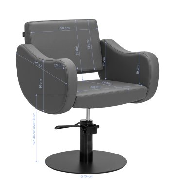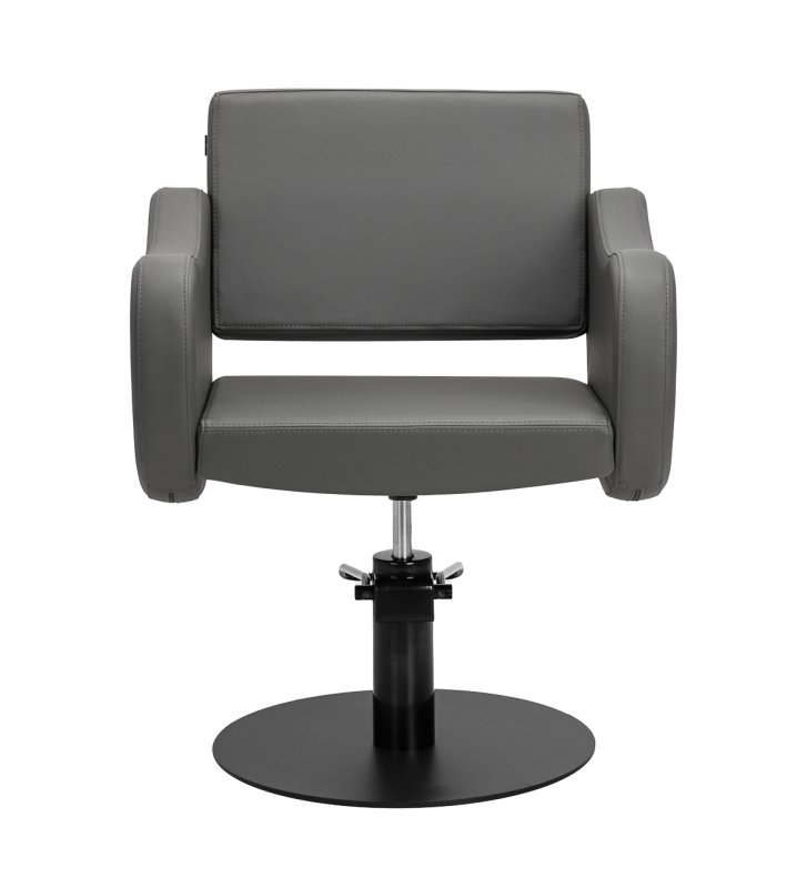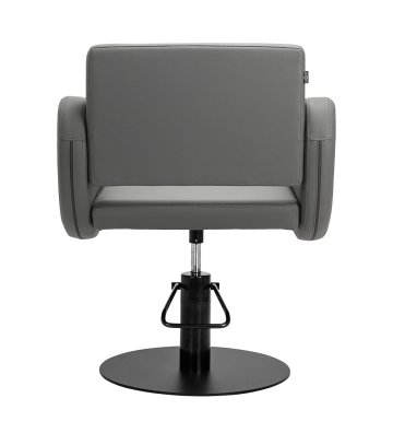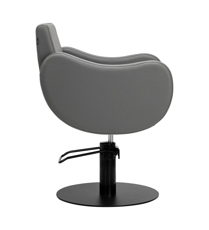 Fotel fryzjerski Gabbiano B240 łączy minimalistyczny design z wygodą codziennego użytkowania. Stabilna, okrągła podstawa w matowej czerni nadaje mu elegancki wygląd, a wypełnienie z pianki oraz przyjemna w dotyku skóra syntetyczna w odcieniach szarości z matowym wykończeniem zapewniają wysoki komfort. Zastosowane materiały są trwałe, odporne na wilgoć oraz łatwe do utrzymania w czystości. Doskonale sprawdzi się zarówno w nowoczesnych, jak i klasycznych aranżacjach, podkreślając profesjonalny styl wnętrza.