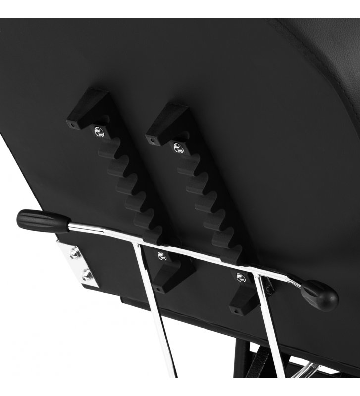 Stopniową regulację kątów, pod którymi znajdują się podnóżek i oparcie, zapewnia specjalny mechanizm. Przy użyciu manualnej dźwigni można płynnie dostosowywać ułożenie fotela. Pozwala to na optymalne ustawienie do indywidualnych potrzeb, dla prawidłowego i wygodnego wykonywania zabiegów oraz wysokiego komfortu użytkowania. Fotel można rozłożyć aż do pozycji leżanki, co znacząco zwiększa jego funkcjonalność. Pozwala to swobodnie wykonywać różnego rodzaju zabiegi między innymi z zakresu kosmetyki, fizjoterapii czy tatuażu.