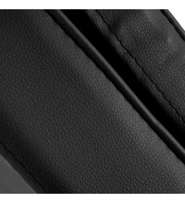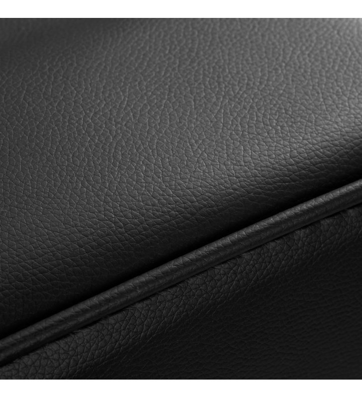 Fotel wypełniony jest pianką i pokryty imitacją skóry w odcieniach czerni. Dzięki użyciu takiego materiału, sprzęt jest komfortowy w użytkowaniu, odporny na wilgoć oraz łatwy w czyszczeniu. Odpowiednio wyprofilowane obszycia nadają ergonomiczny kształt siedzisku. Prosty design oraz klasyczna kolorystyka ułatwiają mu wpasowanie się w każde wnętrze.