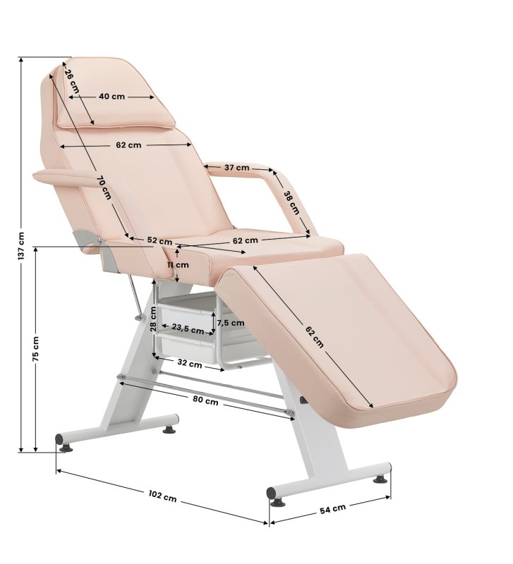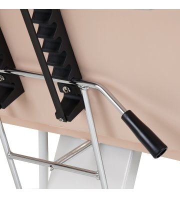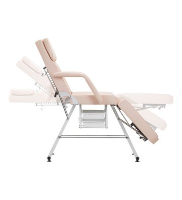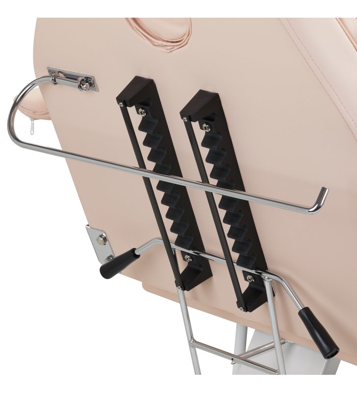 Specjalny mechanizm zapewnia stopniową regulację kątów podnóżka i oparcia. Przy użyciu dźwigni można swobodnie dostosowywać ustawienie fotela. Pozwala to na optymalne dopasowanie do indywidualnych potrzeb, dla prawidłowego i wygodnego wykonywania zabiegów oraz wysokiego komfortu użytkowania. Fotel można rozłożyć do pozycji leżanki, co znacząco zwiększa jego funkcjonalność. Pozwala to swobodnie wykonywać różnego rodzaju zabiegi między innymi z zakresu kosmetyki, fizjoterapii czy tatuażu.
