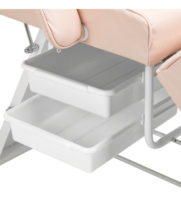 Zamontowane pod siedziskiem kuwety z tworzywa sztucznego zapewniają łatwy dostęp do najpotrzebniejszych przyrządów. Zastosowane materiały sprawiają, że wysuwane pojemniki są trwałe i łatwe w czyszczeniu. Pojemne szuflady znacznie zwiększają komfort pracy, a dodatkowo pomagają utrzymać porządek na stanowisku.