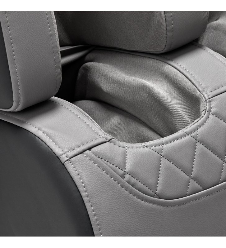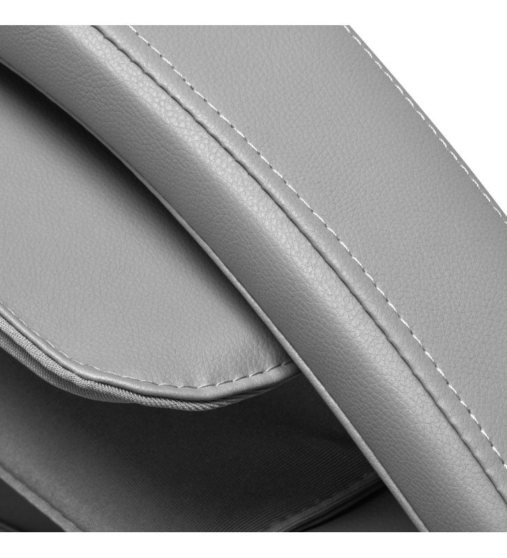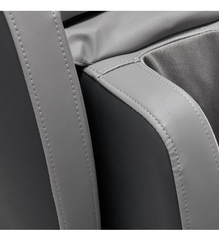 Wygodne wnętrze fotela pokryte jest przyjemną w dotyku imitacją skóry w odcieniach szarości. Zastosowanie takiego materiału sprawia, że jest wysoce odporny na wilgoć oraz łatwy w czyszczeniu. Imitacja skóry w odcieniach szarości na zewnętrznych częściach fotela sprawia, że produkt prezentuje się niezwykle oryginalnie, a zarazem elegancko. Starannie wykonane obszycia nadają mu stylowy wygląd, a solidna konstrukcja gwarantuje długie użytkowanie. Kompaktowy model o estetycznym wykończeniu i klasycznej kolorystyce świetnie wpasuje się w każde wnętrze. Fotel masujący Sakura Classic 305 to doskonały sposób na relaks w dowolnej chwili, zwłaszcza po wyczerpującym dniu lub ciężkim treningu.