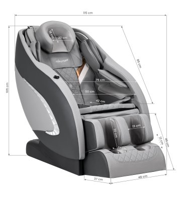 Fotel wyposażony jest w opcję podgrzewania pleców. Funkcja ta skutecznie wspiera i uprzyjemnia rozmasowanie napięć, zwiększając komfort płynący z masażu. Model ten posiada regulację wysunięcia podnóżka, dzięki czemu każdy użytkownik – niezależnie od wzrostu – będzie mógł znaleźć wygodną pozycję do masażu.