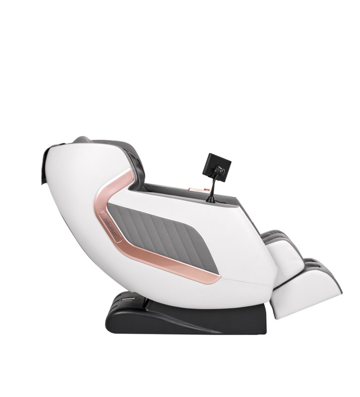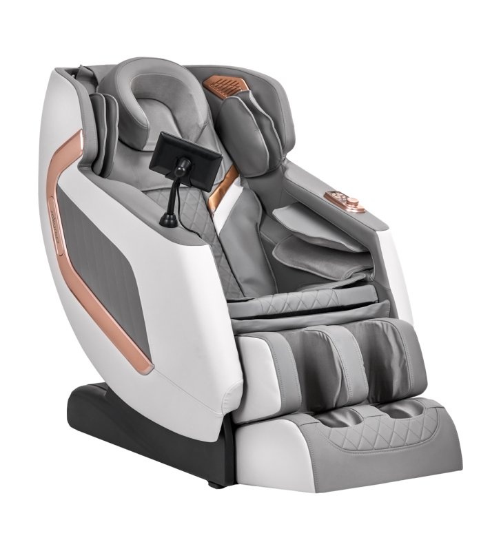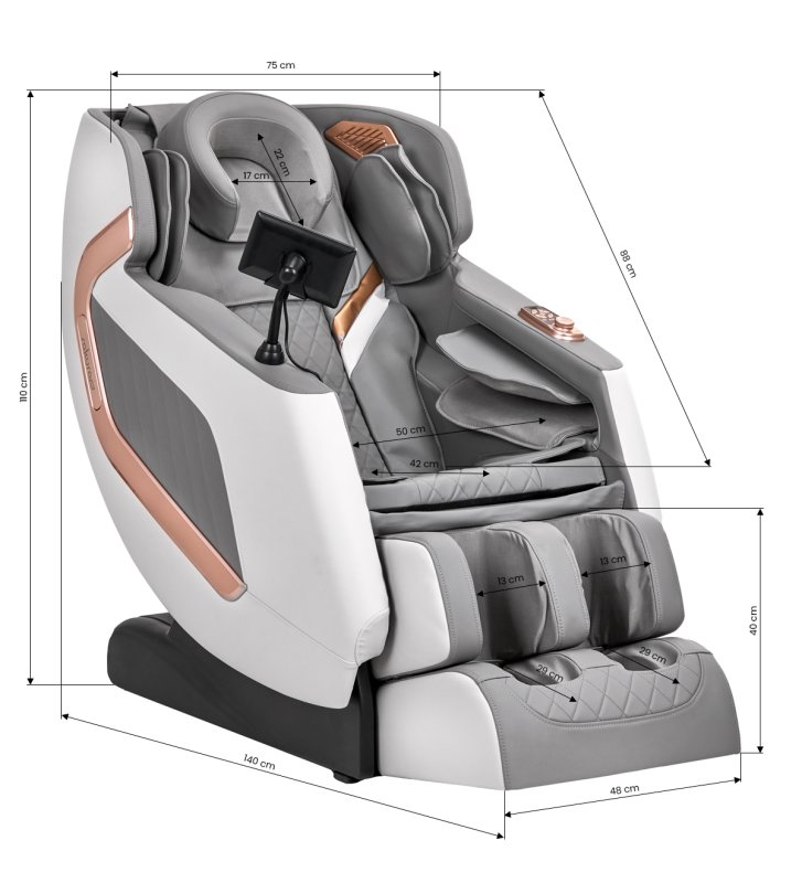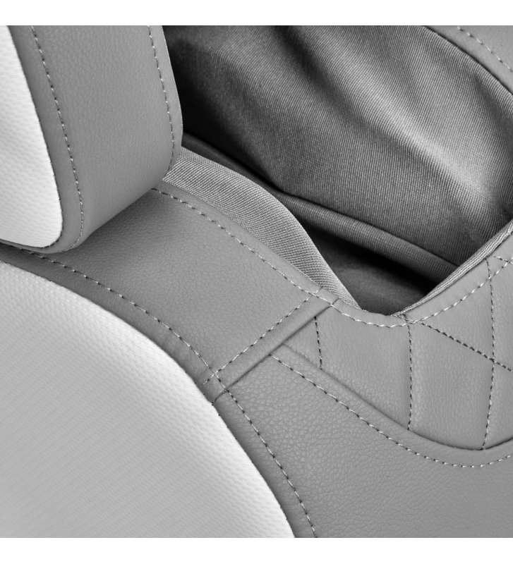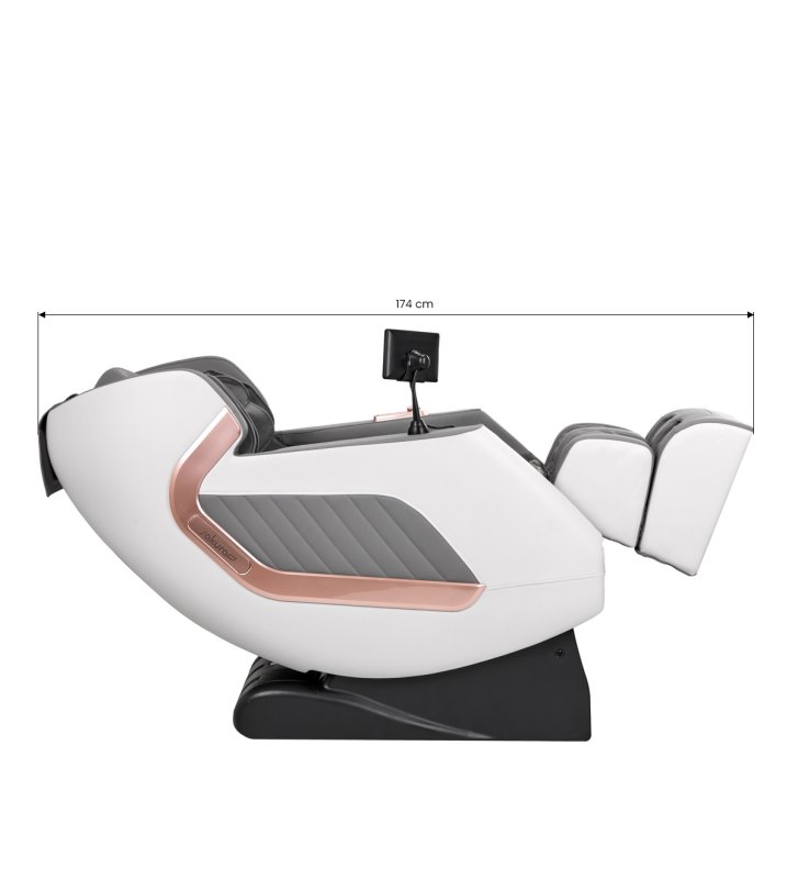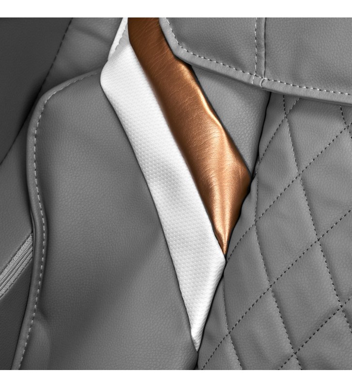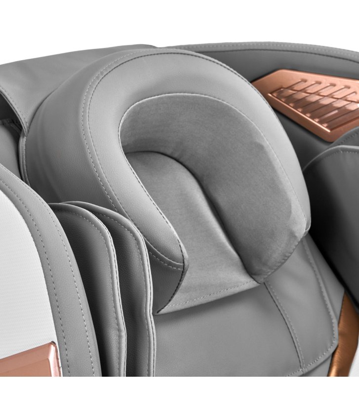 Wygodne wnętrze fotela pokryte jest przyjemną w dotyku imitacją skóry w odcieniach szarości. Zastosowanie takiego materiału sprawia, że jest wysoce odporny na wilgoć oraz łatwy w czyszczeniu. Zastosowane na zewnętrznych częściach fotela materiały w odcieniach bieli i szarości oraz ozdobny element w odcieniu rose gold, nadają produktowi charakterystyczny, elegancki wygląd, który wyróżnia go spośród innych. Starannie wykonane obszycia nadają mu stylowy wygląd, a solidna konstrukcja gwarantuje długie użytkowanie. Kompaktowy model o estetycznym wykończeniu i klasycznej kolorystyce doskonale wpasuje się w każde wnętrze. Fotel masujący Sakura Classic 802A to idealny sposób na relaks w dowolnej chwili, zwłaszcza po wyczerpującym dniu lub ciężkim treningu.