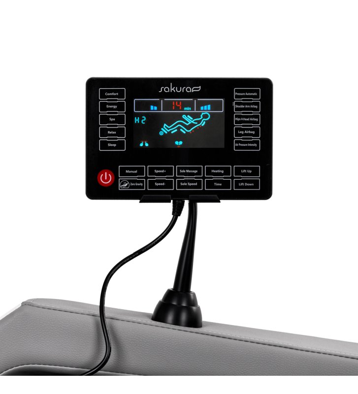 Mebel wyposażony jest w czytelny panel sterowania z ekranem LCD, który można umieścić na uchwycie zamontowanym na prawym podłokietniku lub trzymać w dłoniach. Dzięki temu obsługa fotela jest intuicyjna i wygodna. Na ekranie LCD wyświetlane są informacje o bieżącej pracy urządzenia, w tym masowany obszar ciała, intensywność masażu, czas zabiegu oraz wybrany program. Panel pozwala na swobodne dostosowywanie ustawień fotela oraz wyboru trybu masażu. Pozwala także na regulację czasu trwania sesji, z opcjami 5, 10, 15, 20, 25 lub 30 minut.