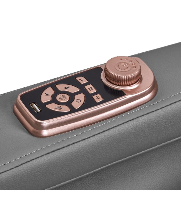 Dodatkowo fotel wyposażono w przyciski umieszczone na lewym podłokietniku, umożliwiające alternatywną sterowanie ustawieniami fotela. Wbudowany podręczny pilot pozwala w dowolnym momencie zabiegu kontrolować intensywność masażu, pozycję fotela, aktywność masażu stóp czy funkcję Zero Gravity. Ponadto wyposażony jest w port USB, co pozwala ładować telefon w trakcie masażu.