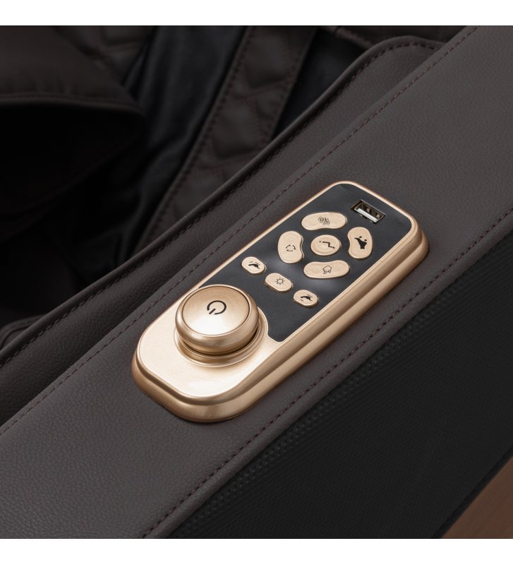 Fotel został wyposażony w przyciski na lewym podłokietniku, które umożliwiają wygodne sterowanie ustawieniami. Wbudowany podręczny pilot pozwala w dowolnym momencie zabiegu regulować niektóre parametry masażu, pozycję fotela, aktywność masażu stóp czy funkcję Zero Gravity. Dla jeszcze większej wygody fotel posiada port USB, co pozwala ładować telefon w trakcie użytkowania.