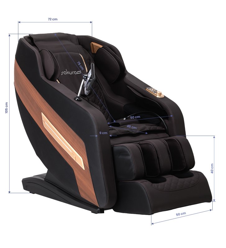 Fotele masujące marki Sakura odznaczają się mistrzowską precyzją wykonania, najbardziej zaawansowaną technologią oraz całkowitym komfortem dla użytkownika. To doskonały wybór dla tych, którzy pragną najwyższej jakości masażu, łatwo dostępnego w ich domach lub miejscach pracy. Konstrukcja fotela jest solidna, zaś obicie wykonane jest z wysokiej jakości eko skóry.