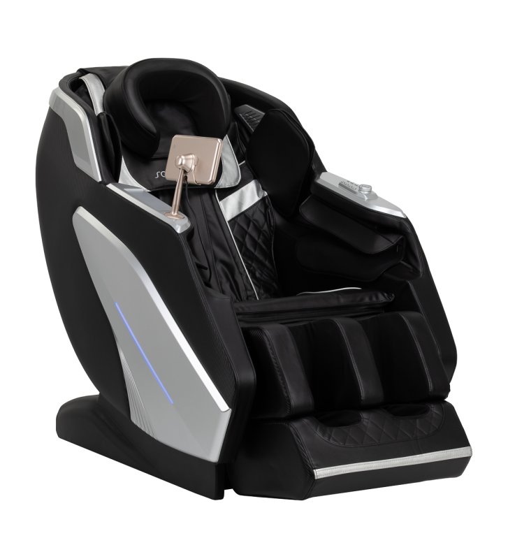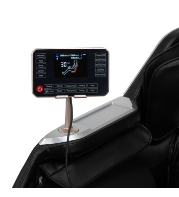 Przejrzysty panel sterowania z czytelnym ekranem LCD zapewnia intuicyjną obsługę fotela. Może być wygodnie umieszczony w uchwycie na prawym podłokietniku lub trzymany w dłoni. Na wyświetlaczu prezentowane są informacje o aktualnie masowanej partii ciała, intensywności masażu, czasie trwania sesji oraz wybranym programie. Za pomocą panelu można łatwo regulować pozycję fotela, wybrać preferowany tryb masażu oraz ustawić czas zabiegu – 15, 20, 25 lub 30 minut.