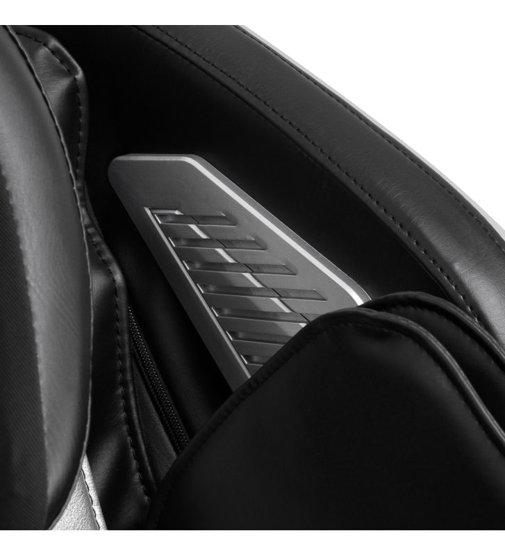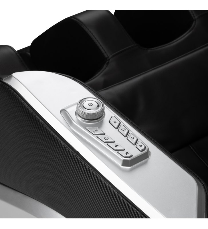 Dla jeszcze większej wygody fotel wyposażono w dodatkowy zestaw przycisków sterujących umieszczonych na lewym podłokietniku. Wbudowany podręczny pilot umożliwia szybki dostęp do najważniejszych funkcji bez konieczności sięgania po główny panel. Użytkownik może z łatwością zmieniać rodzaj masażu, uruchamiać masaż stóp oraz aktywować funkcję Zero Gravity – wszystko z myślą o maksymalnym komforcie i relaksie.