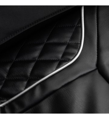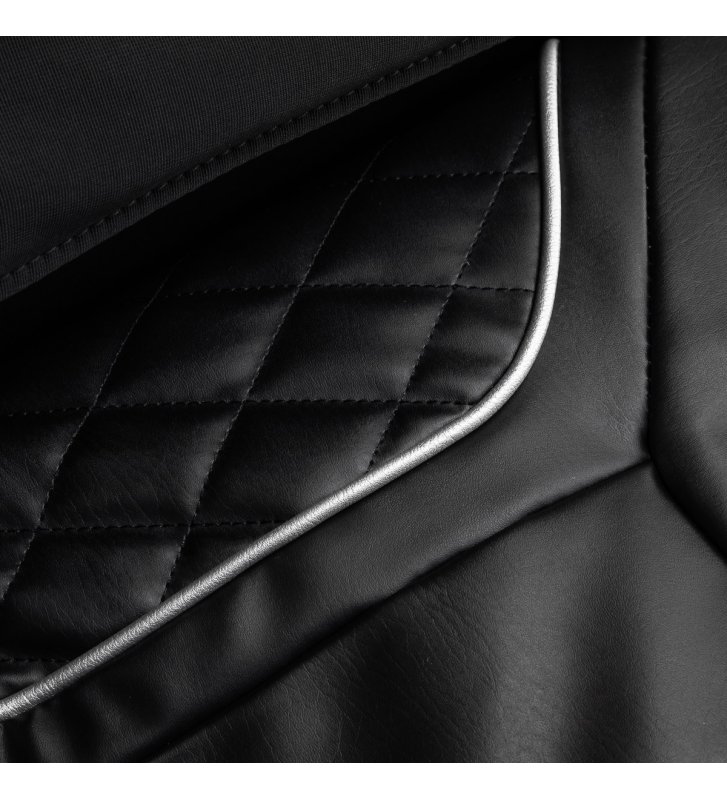 Miękka imitacja skóry w odcieniach czerni zapewnia wyjątkowy komfort użytkowania oraz łatwość w utrzymaniu czystości. Materiał ten jest nie tylko estetyczny, ale również odporny na wilgoć, co podnosi jego funkcjonalność. Zewnętrzne elementy w kolorze srebra w połączeniu ze strukturalnym wykończeniem w tonacji czerni nadają fotelowi nowoczesny, stylowy wygląd. Kompaktowa forma oraz stonowana kolorystyka sprawiają, że model harmonijnie wpisuje się w różnorodne aranżacje wnętrz. Sakura Prime 108 to doskonały wybór dla osób poszukujących codziennego relaksu – zwłaszcza po intensywnym dniu lub wymagającym wysiłku fizycznym.
