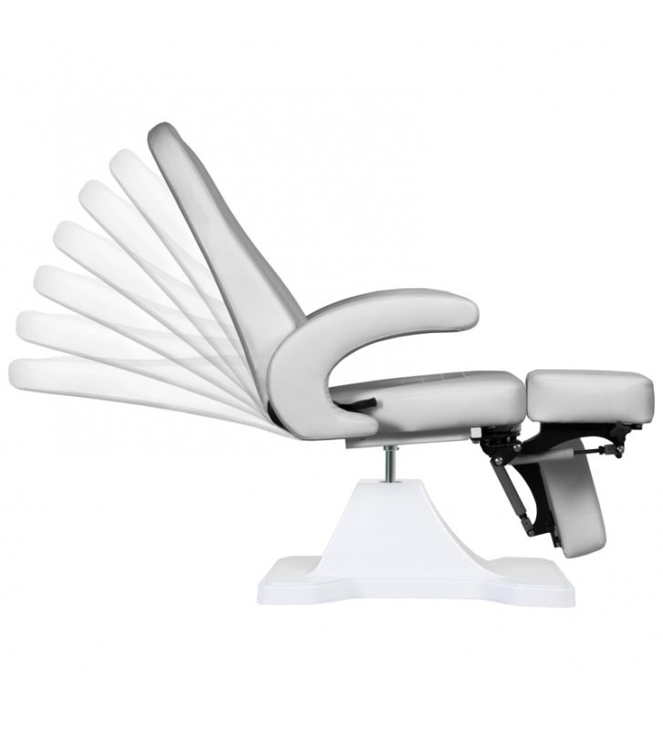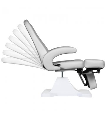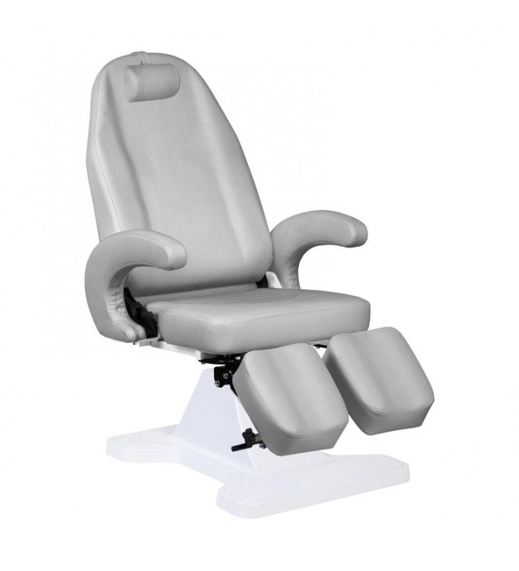 Wyjątkowy fotel kosmetyczny elektryczny idealnie nadający się do gabinetów kosmetycznych oraz salonów SPA. Dzięki niezależnym siłownikom umożliwia regulację fotela w 3 płaszczyznach płaszczyznach za pomocą pilota i przełączników nożnych dając możliwość komfortowego przeprowadzenia zabiegów pedicure oraz na twarz i ciało.