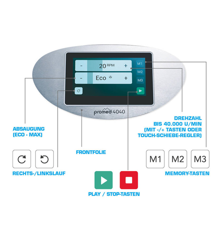 Profesjonalna frezarka podologiczna Promed 4040 z pochłaniaczem pyłu. Idealnie sprawdzi się w pracy przy manicure oraz pedicure. Frezarka renomowanej, niemieckiej firmy PROMED. Ciekawy i nowoczesny design, elektroniczne sterowanie, jedna z najlżejszych rączek na rynku – tylko 95 g – sprawia, że praca z tym urządzeniem jest komfortowa i przyjemna.