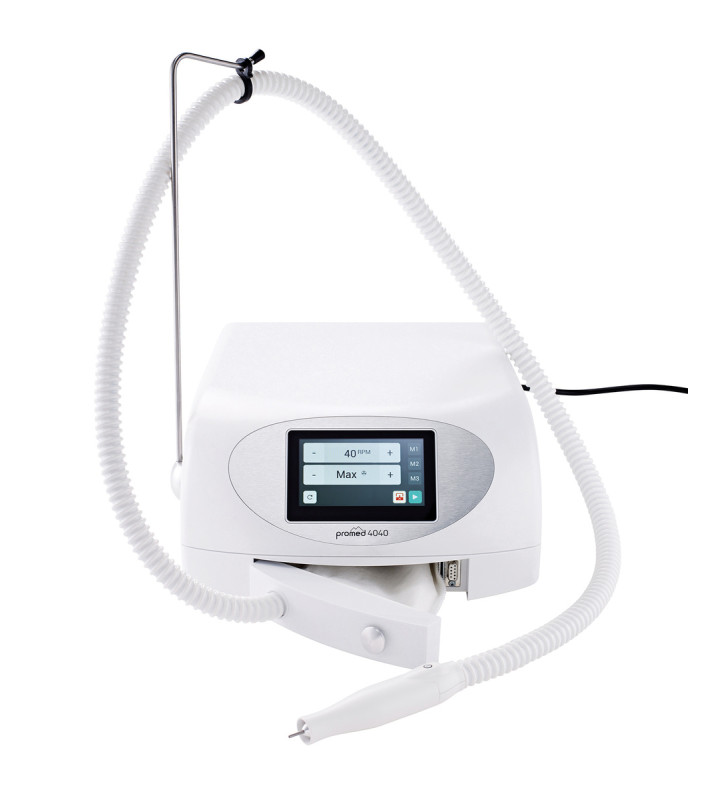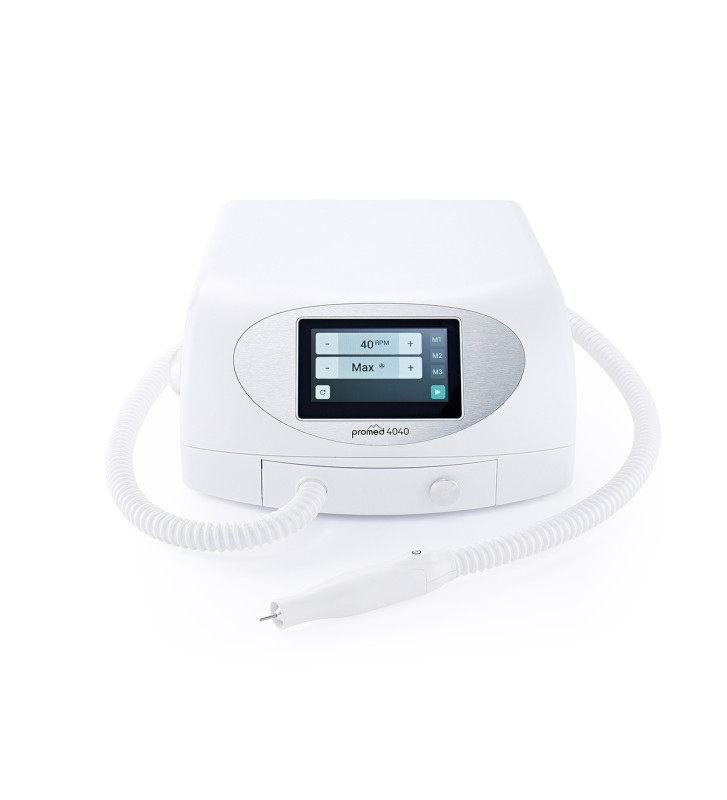Urządzenie Frezarka podologiczna renomowanej niemieckiej firmy PROMED. Model 4040 z pochłaniaczem pyłu - nadaje się zarówno do pracy przy manicure oraz pedicure.