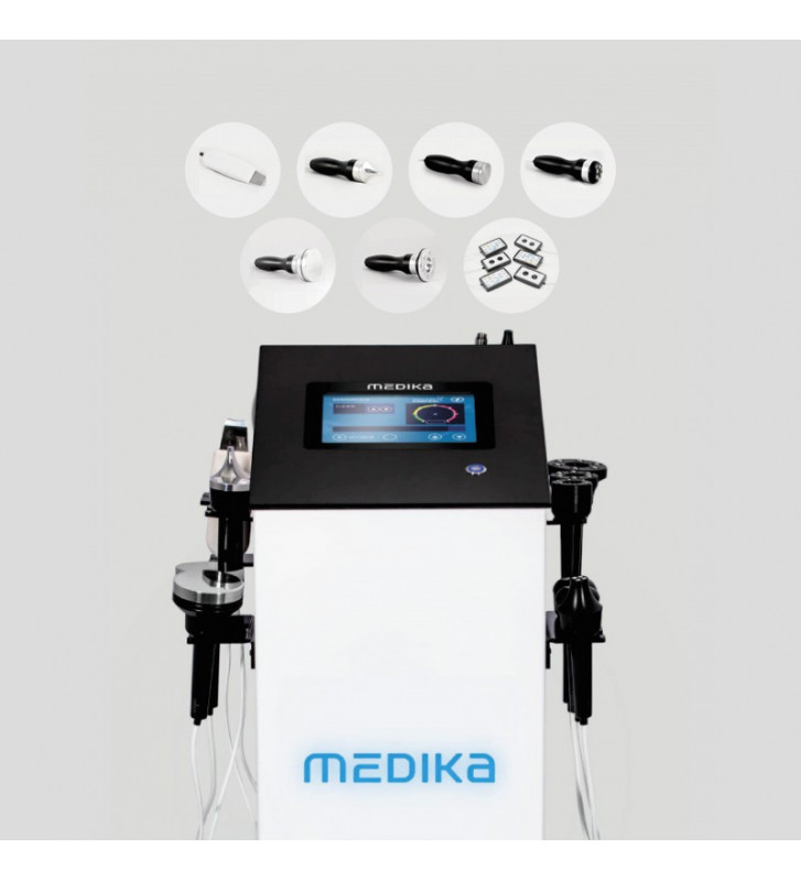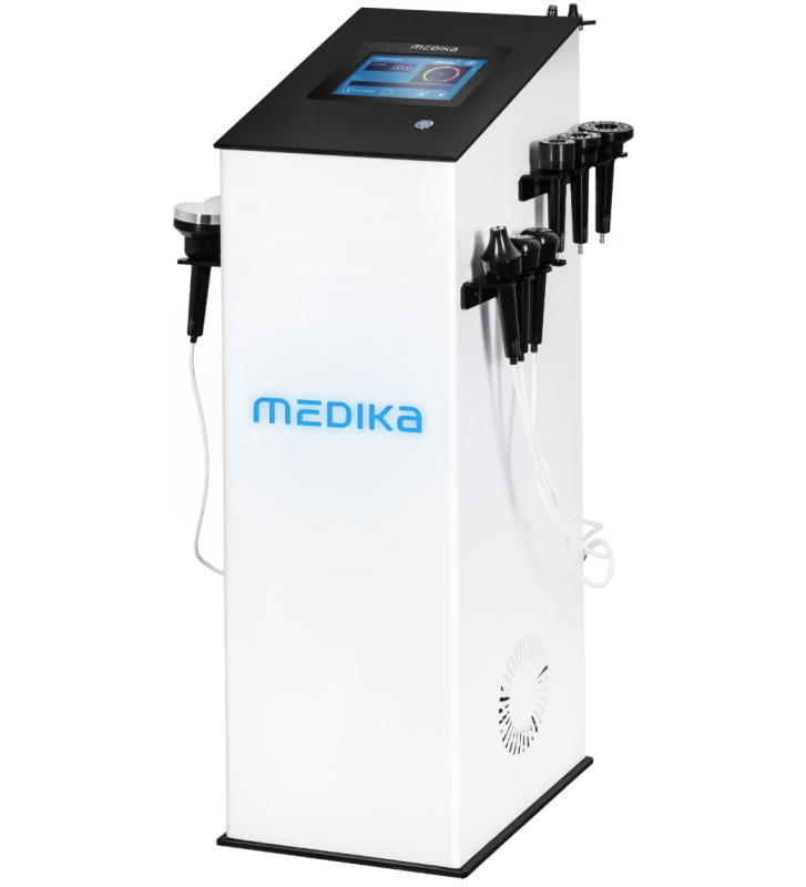 Kombajn kosmetyczny Medika Basic 7w1: peeling kawitacyjny, mezoterapia bezigłowa, ultradźwięki, fale radiowe, liposukcja ultradźwiękowa, dermomasaż, lipolaser.