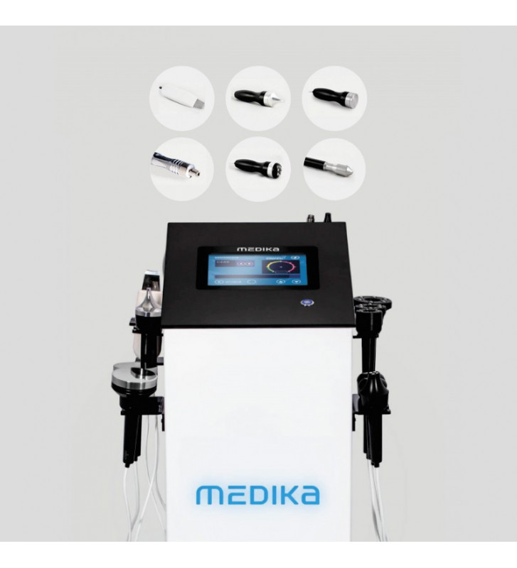 Kombajn kosmetyczny Medika Basic 6w1: peeling kawitacyjny, mikrodermabrazja, mezoterapia bezigłowa, ultradźwięki, fale radiowe, oxybrazja.