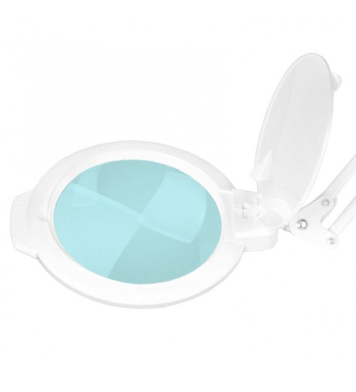 Lampa charakteryzuje się bardzo stabilnym ranieniem, dzięki diodom LED SMD świeci jasnym światłem przy niskim poborze prądu. Szklana soczewka umożliwia oglądanie skóry w powiększeniu przy jednoczesnym doskonałym oświetleniu. Stosowana może być przy zabiegach manicure i pedicure, makijażu permanentnym czy depilacji.