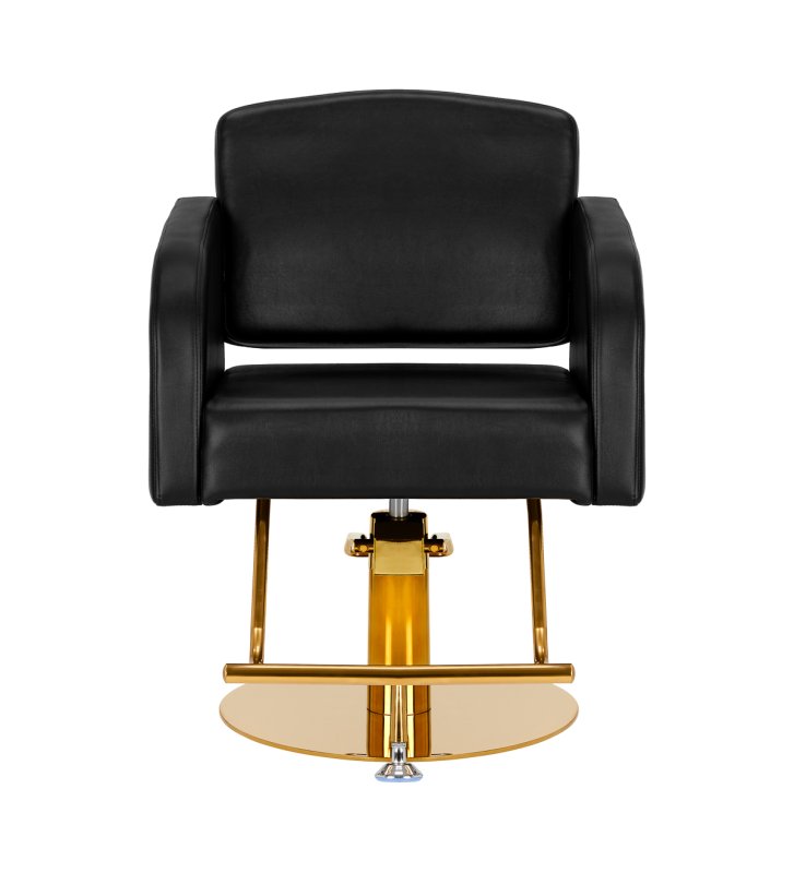 Wygodny mebel wypełniony jest odporną na odkształcenia pianką, z kolei obicie wykonane zostało z przyjemnej w dotyku skóry syntetycznej. Zastosowane materiały zapewniają komfortowe użytkowanie przez długi czas i sprawiają, że sprzęt jest odporny na wilgoć, wytrzymały oraz łatwy do utrzymania w czystości. Pokrycie w odcieniach czerni oraz elementy w barwach złota nadają mu wyraz ponadczasowej elegancji. Fotel fryzjerski Gabbiano Turyn wyróżnia prosty design, co sprawia, że fotel będzie doskonale prezentować się w wielu profesjonalnych salonach.