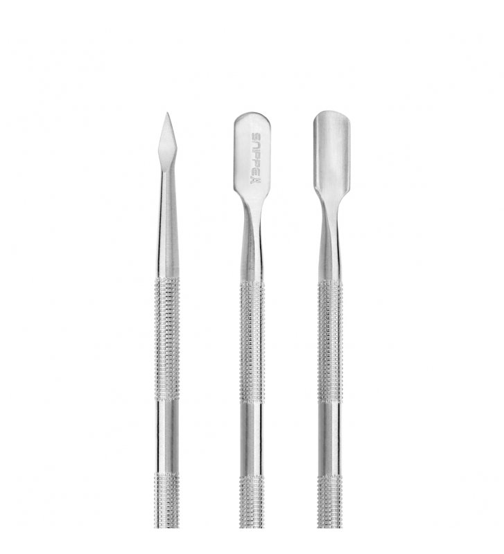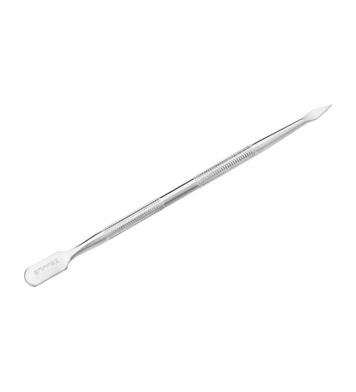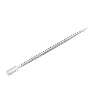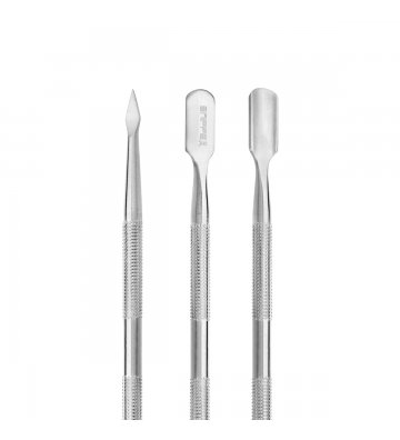 • Zaokrąglona łopatka przeznaczona jest do odsuwania skórek z płytki paznokcia, a także usuwania pozostałości poprzednich stylizacji. Specjalnie wyprofilowana końcówka jest oszlifowana w taki sposób, by nie uszkadzać płytki.