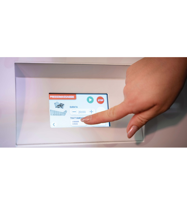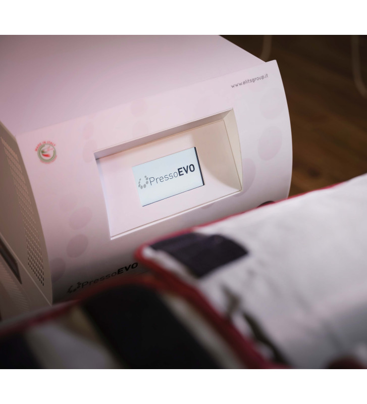 Masaż uciskowy - urządzenie maksymalizuje efekty masażu manualnego, dając operatorowi pełną swobodę. Pressoevo wyposażono w legginsy i pas na brzuch wykonane z nylonu i PVC, które są niezwykle odporne na zużycie. Urządzenie oferuje 9 specjalistycznych programów na 6 obszarów ciała. Poprzez stymulację układu limfatycznego reaktywuje krążenie, dotlenia tkanki i usuwa nadmiar toksyn, dając widoczne rezultaty już po pierwszej sesji.