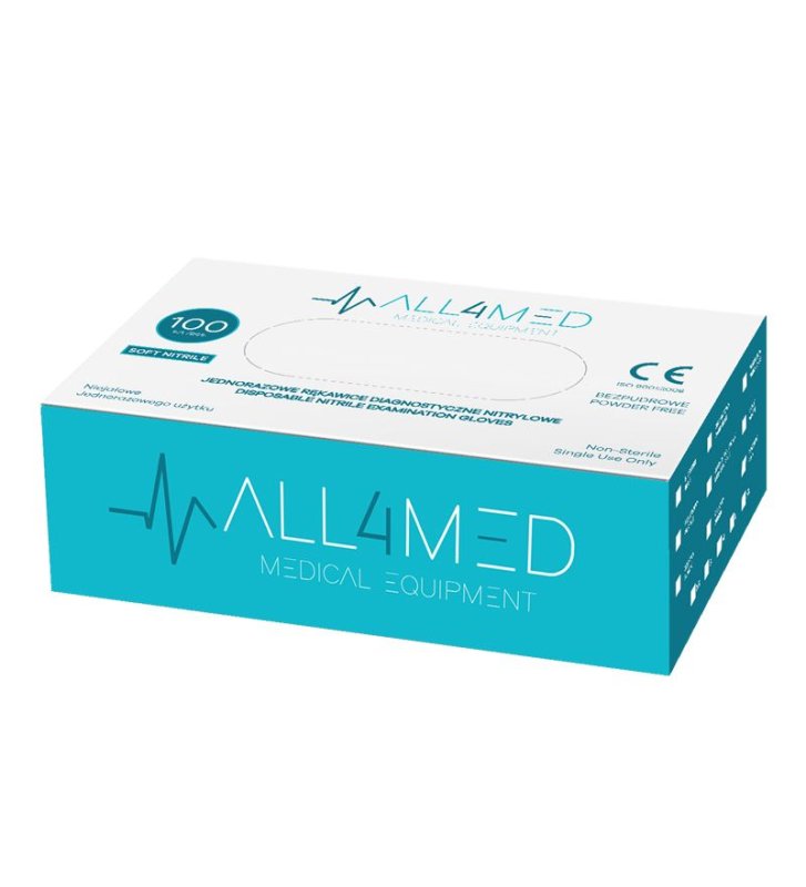 Rękawiczki nitrylowe ALL4MED to produkt najwyższej jakości. Dzięki wysokiej gramaturze są bardzo trwałe i wytrzymałe na pękanie. Zostały dopuszczone do przemysłu spożywczego i kontaktu z żywnością. Rękawiczki nitrylowe ALL4MED są szczelne na smary i oleje, a także tłuszcze. Wykazują także chemoodporność na delikatne substancje chemiczne.