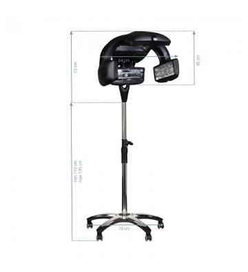 Urządzenie dostępne jest w dwóch wersjach: wiszącej i na statywie, co daje możliwość wyboru najbardziej dogodnej opcji dla danego salonu fryzjerskiego. Infrazon Gabbiano infrazon stojący Y-707 czarny znajduje zastosowanie przy trwałej, farbowaniu, rozjaśnianiu oraz termostymulacji zabiegów fryzjerskich.