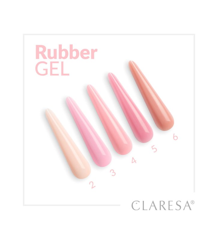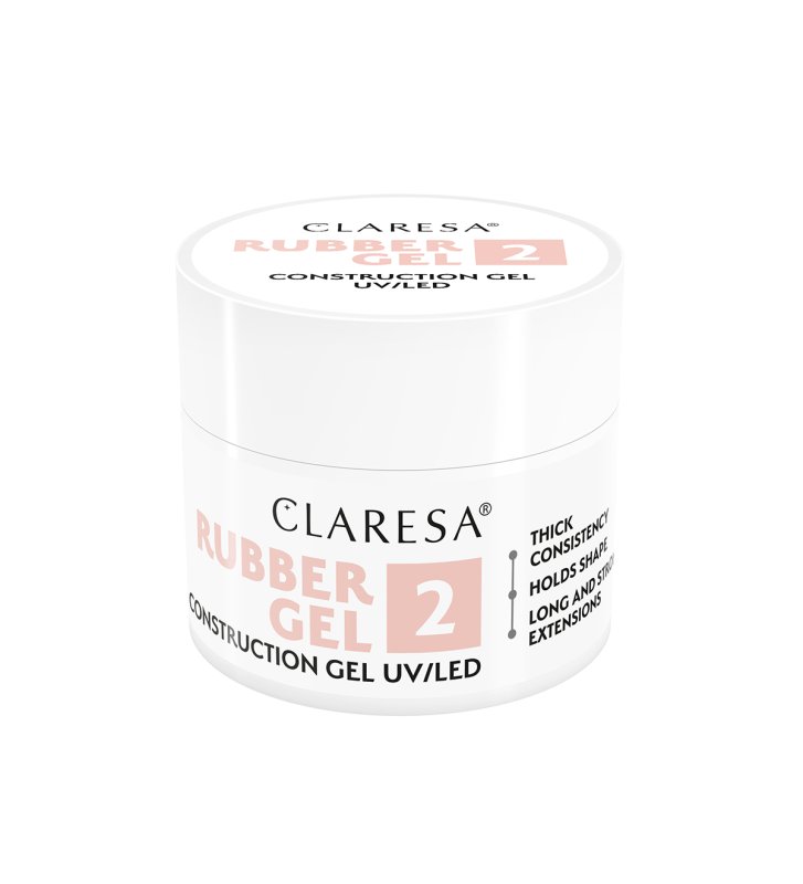 Rubber Gel od Claresa to produkt o wyjątkowych właściwościach. Jego formuła jest gęsta i odporna na temperaturę otoczenia, dzięki czemu doskonale nadaje się do konstrukcji paznokcia i przedłużania płytki. Możesz mieć pewność, że nawet w upalne dni żel będzie zachowywać się tak samo, a Ty zbudujesz perfekcyjny szkielet za każdym razem. Rubber Gel charakteryzuje się także tiksotropią (czyli pamięcią cieczy), co sprawia, że po nałożeniu na paznokieć nie spływa na skórki. Masa przy pracy pędzelkiem doskonale się poziomuje, pozwalając na równomierne rozłożenie produktu nawet osobom początkującym. Żel kryje i koryguje niedoskonałości płytki, dzięki czemu może być stosowany solo, bez użycia lakieru hybrydowego. Wystarczy baza i top. Paleta coverowych odcieni nude z pewnością przypadnie do gustu fankom naturalnych stylizacji.
